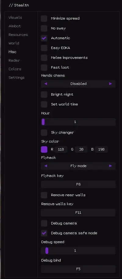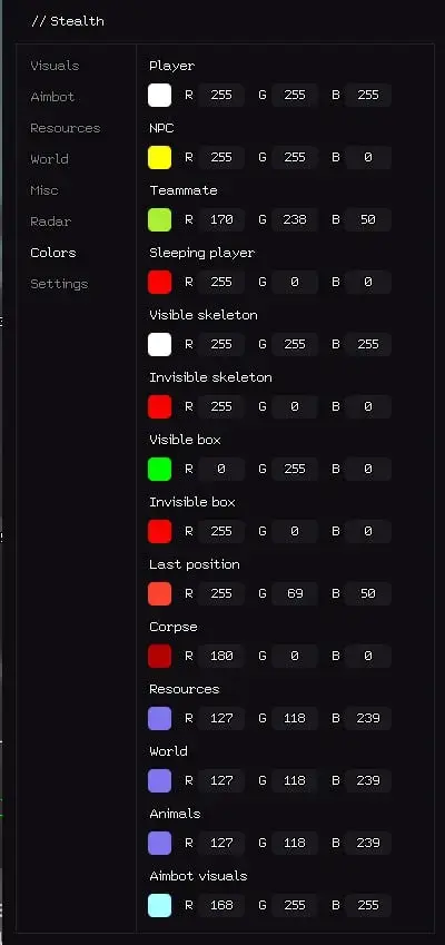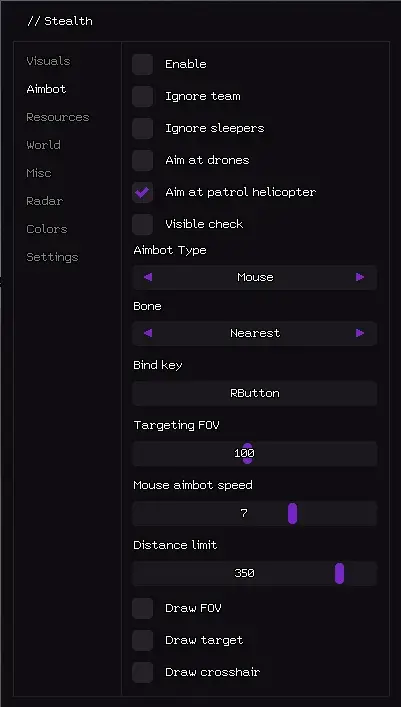 Гайд по настройке чита Stealth Full Rust