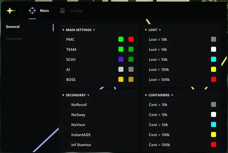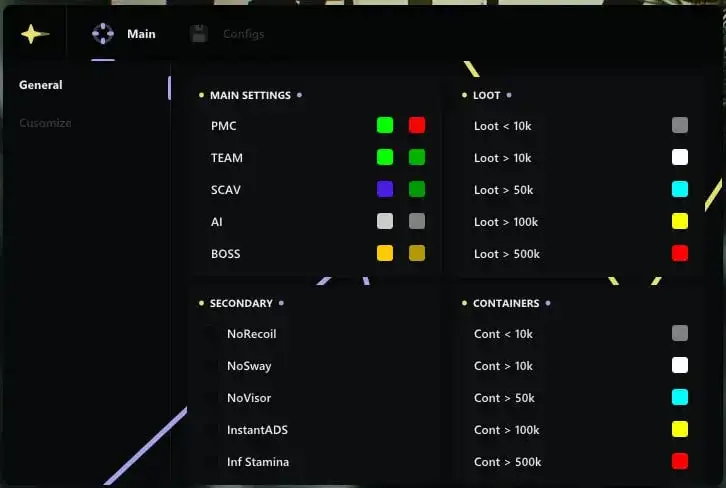 Ancient Chams для Escape From Tarkov — ваш надежный союзник в мире жестких реалий Tarkov. Получите безопасный читы с уникальными функциями: кастомизация видимости врагов, умная маркировка лута, NoRecoil, NoSway и многое другое