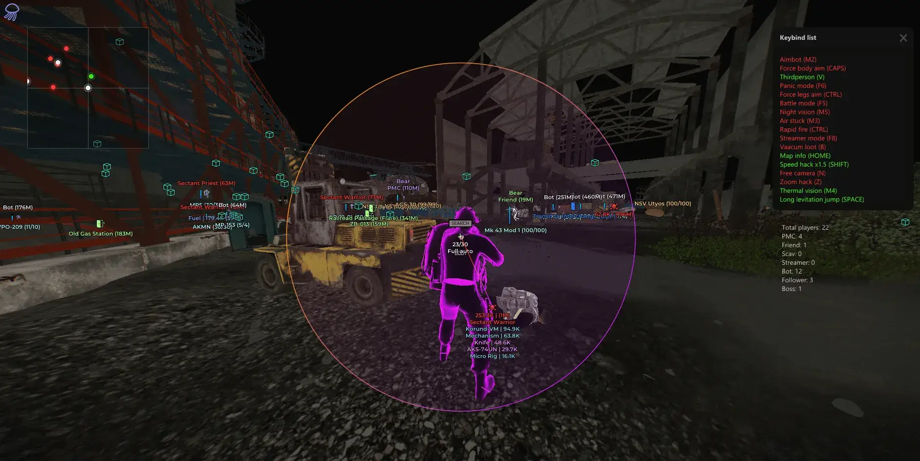 Medusa EFT — это популярный чит для игры Тарков (Escape from Tarkov) от проверенного разработчика, который включает лучшие Rage функции. С этим читом вы получаете множество возможностей, включая AimBot с настройкой дальности, костей и режима цели (игроки, друзья, дикари, боссы и т.д.), а также эффективные визуализации с настройками для коробок, чамсов, здоровья, информации о противниках и многого другого.